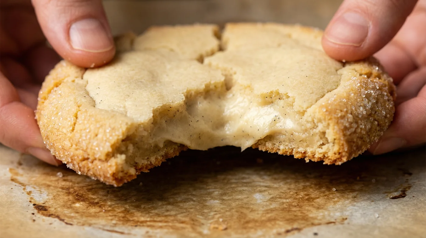 Pero aquí es donde la prisa te roba la verdadera obra maestra. Cuando horneas la masa recién hecha, la mantequilla a temperatura ambiente se derrite de golpe ante el calor extremo del horno. Los bordes se esparcen rápido por la bandeja de metal, perdiendo su forma, y el centro queda irremediablemente plano. Te quedas con un disco dulce que, aunque reconfortante, carece de esa **textura de repostería fina** que distingue a un capricho de paso de una creación memorable y profesional.