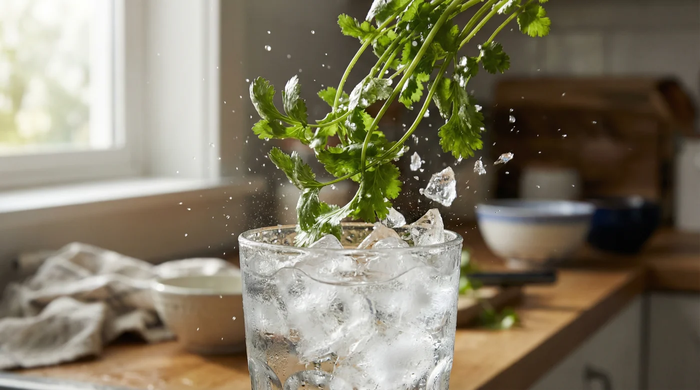 Detén tu mano. Ese cilantro fresco marchito no está muerto, simplemente está agotado. La diferencia entre una hierba arruinada y una que necesita ayuda urgente es invisible a simple vista, pero cambia por completo cuando dejas de ver a los ingredientes como productos desechables y comienzas a entenderlos como organismos que reaccionan a su entorno térmico.