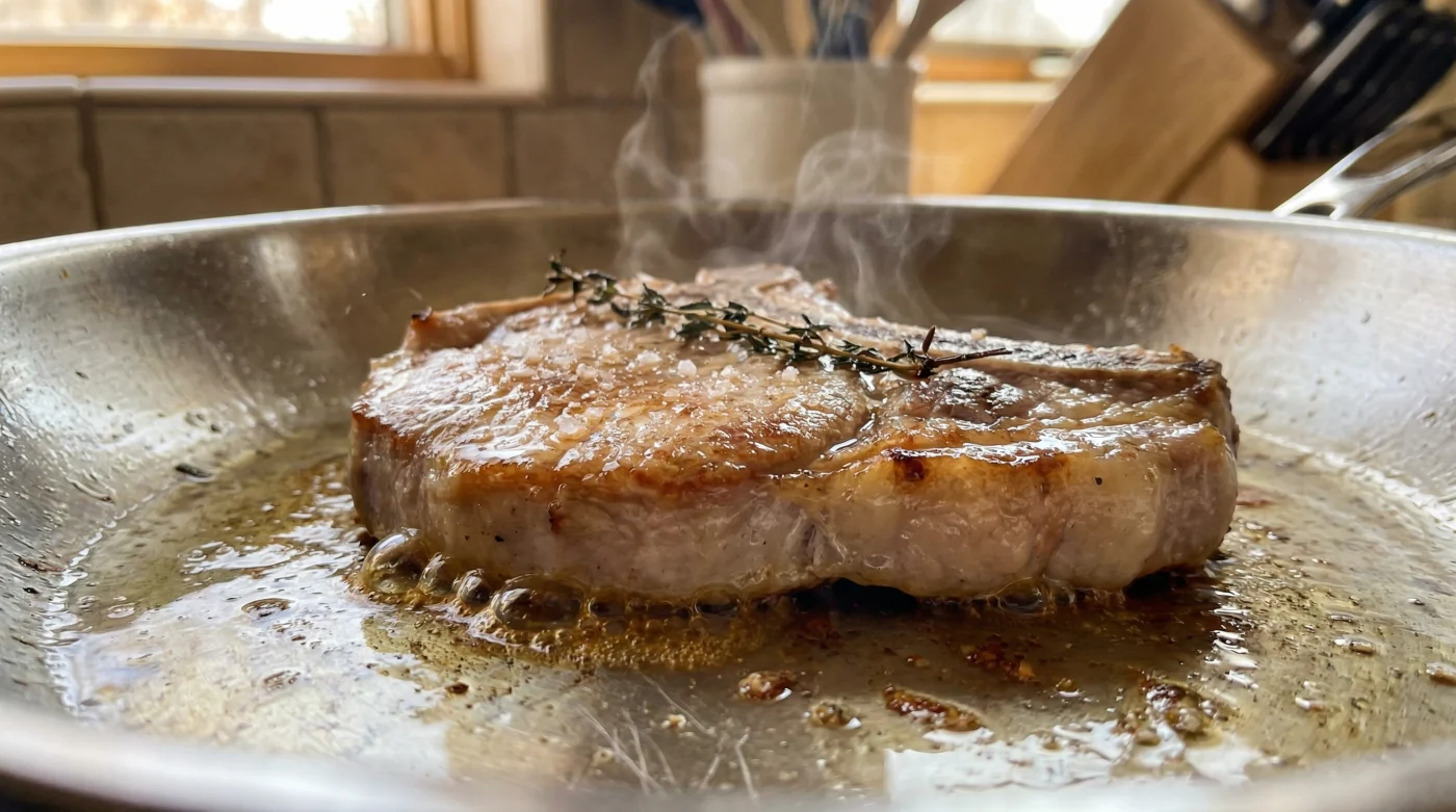 Piensa en las fibras delicadas de la carne como si fueran un resorte físico muy tenso. Si lo arrojas sin previo aviso a un ambiente hostil y ardiendo, se cierra sobre sí mismo, exprimiendo la humedad vital. La chuleta tiene una arquitectura peculiar que solemos ignorar: un centro magro rodeado por una corona exterior de grasa que exige tiempos de cocción completamente distintos.